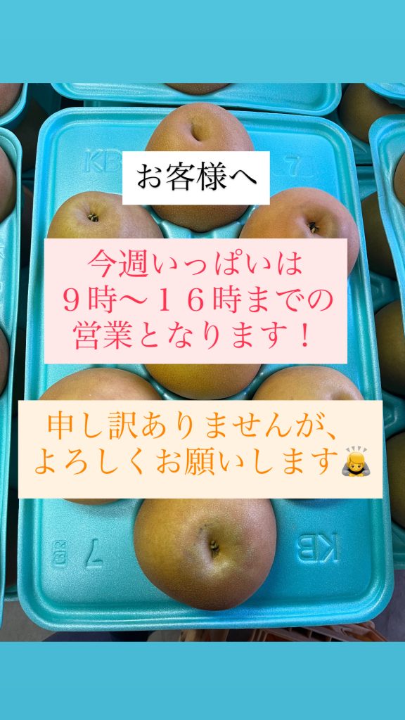 本日の営業は終了致しました!明日25土曜日、26日日曜日は直売所お休みとなります!