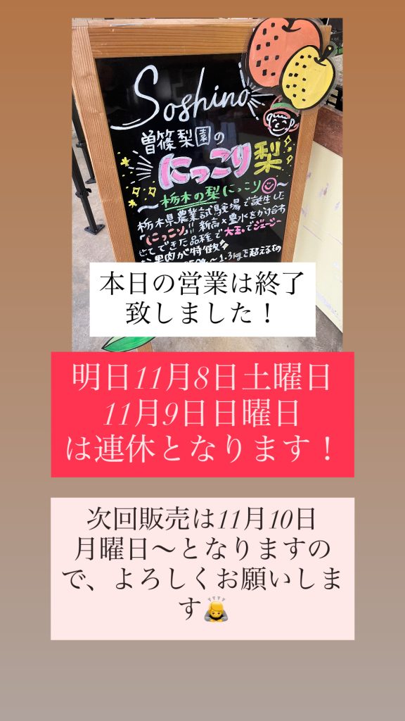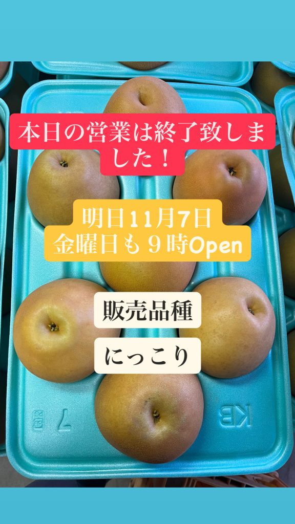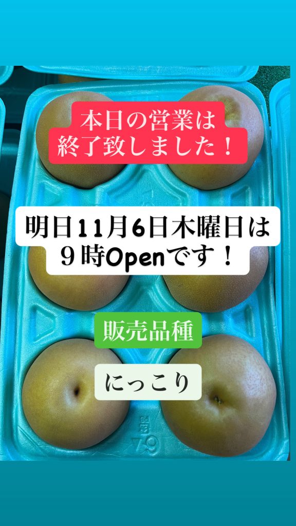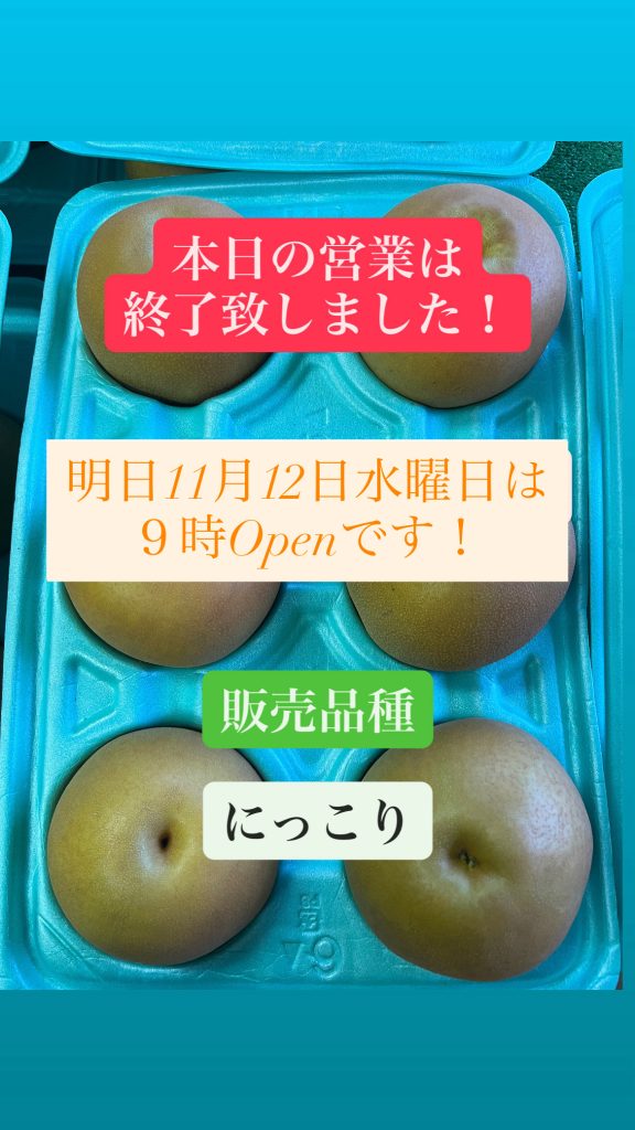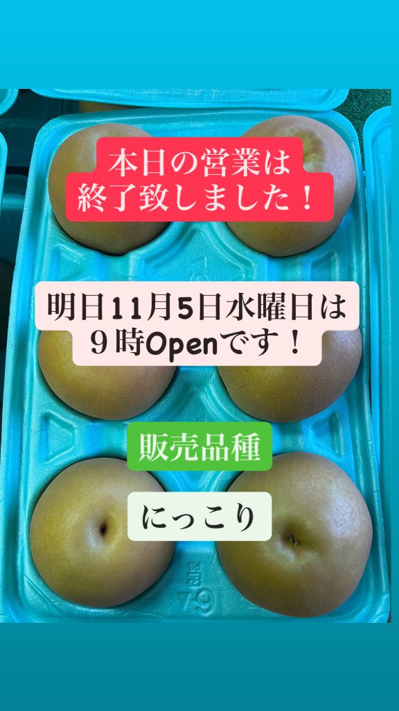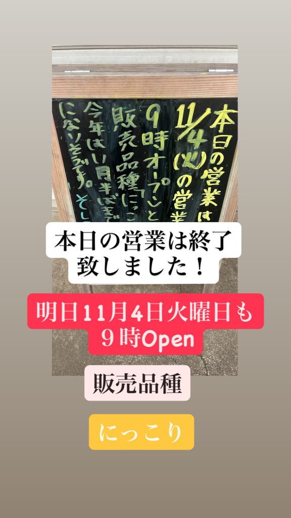 本日の営業は終了致しました!明日11月4日火曜日も9時Open〜今年のにっこり販売について〜