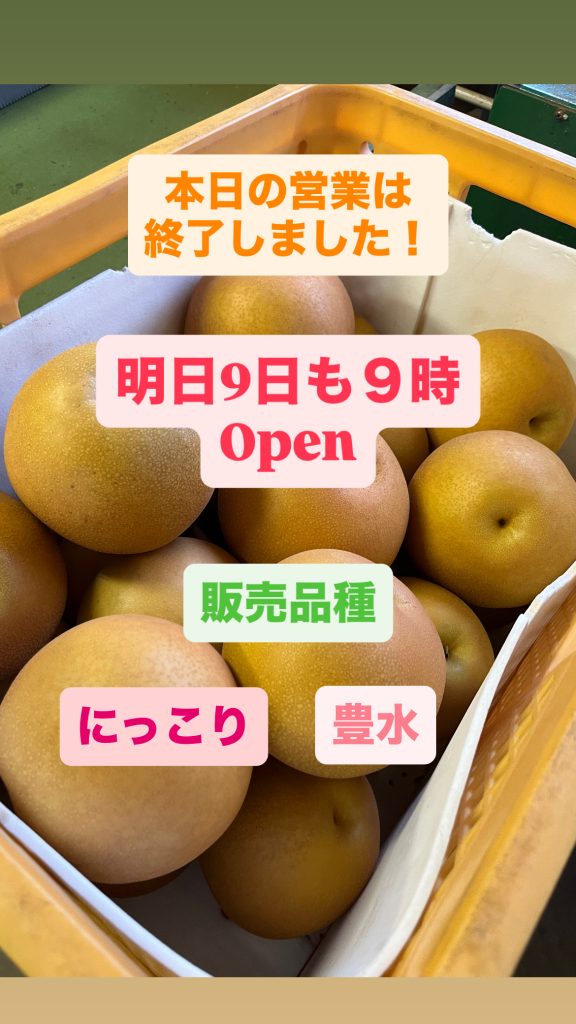 本日も直売所おやすみです!豊水販売までもう少しお待ち下さい!